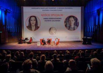 Na szczególną uwagę zasługiwał także udział gości specjalnych, którzy w swoich rozmowach pokazali, jak wiele wspólnota i zaufanie znaczą w codziennym życiu społecznym. Anna Dereszowska i Patryk Galewski w rozmowie „Wspólnota warta jest rozmowy – o drugim człowieku, zaufaniu i dawaniu szansy” podzielili się refleksjami o budowaniu relacji opartych na empatii i wzajemnym wsparciu, opowiadali o swoich motywacjach do angażowania się w działania społeczne, a także o kolejnych planach. Łukasz Orbitowski w rozmowie z Jarosławem Szubrychtem „Literatura może zmieniać życie – nawet za murami więzienia” opowiadał o sile literatury i jej wpływie na drugiego człowieka. Z kolei Joanna Sadzik, Prezeska Stowarzyszenia Wiosna, w rozmowie z Aleksandrą Bielecką zatytułowanej „Od Paczki do wspólnoty. Dlaczego pomaganie buduje nas wszystkich”, mówiła o tym, jak empatia i wspólne działanie potrafią realnie zmieniać rzeczywistość i budować więzi międzyludzkie.